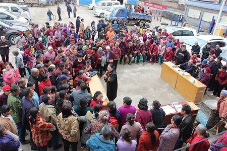 忠縣法院法官在巡回審理結(jié)束后為旁聽(tīng)群眾答疑解惑。