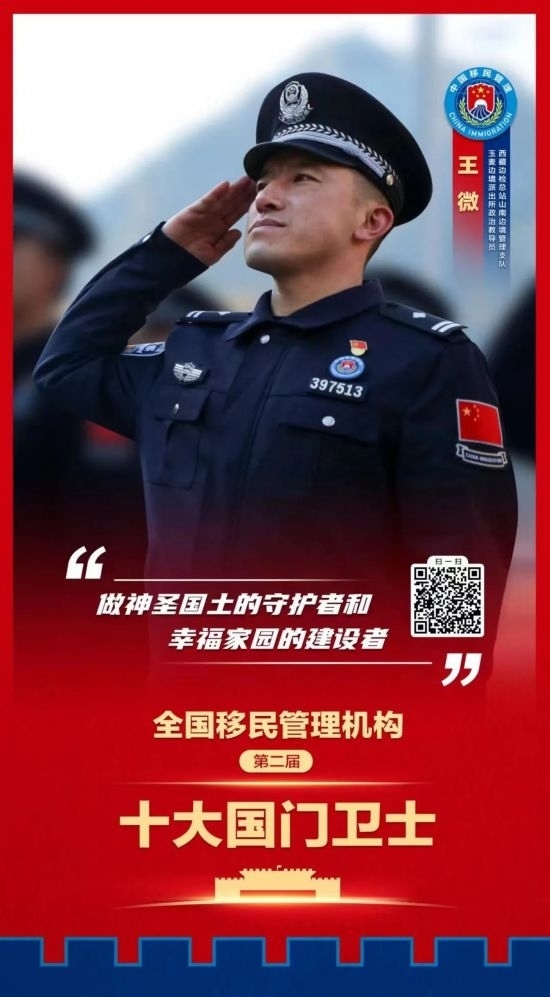 國家移民管理機構(gòu)十大國門衛(wèi)士每3年評選表彰一次,獲評人員是全國移民管理警察隊伍中政治立場堅定、能力素質(zhì)過硬、工作實績卓著、紀(jì)律作風(fēng)優(yōu)良、模范作用顯著的先進典型,是新時代移民管理警察的杰出代表。他們忠誠履職、無私奉獻(xiàn),在捍衛(wèi)國家政治安全、維護國門邊境穩(wěn)定、促進經(jīng)濟社會發(fā)展過程中作出了突出貢獻(xiàn),生動反映了國家移民管理體制改革的豐碩成果,展示了移民管理警察良好精神風(fēng)貌,展現(xiàn)了移民管理機構(gòu)新形象、新作為。