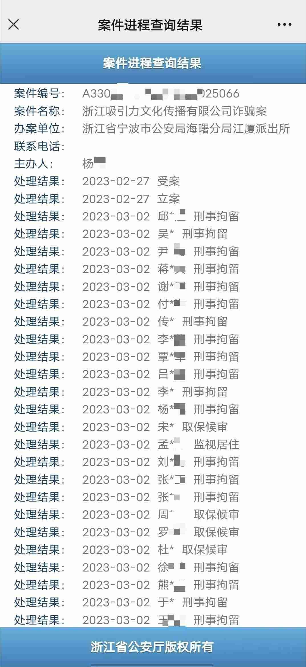 寧波警方一名辦案民警向記者證實了吸引力公司被調(diào)查一事?!吧婕叭藛T較多,我們現(xiàn)在也在找一些學(xué)員進(jìn)行案件取證工作?!痹撁窬€證實,楊濤鳴真實姓名為“楊某成”。