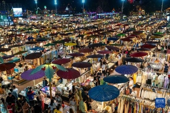 這是云南省西雙版納景洪市告莊西雙景星光夜市(2023年2月12日攝)。