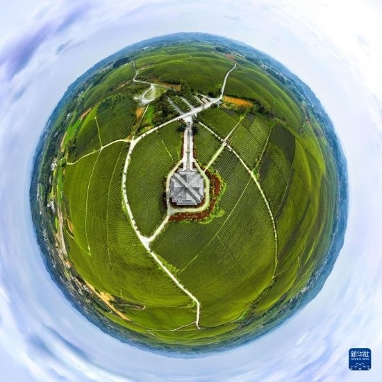 4月4日拍攝的遵義市湄潭縣永興鎮(zhèn)“萬畝茶海”(無人機(jī)全景拼接照片)。