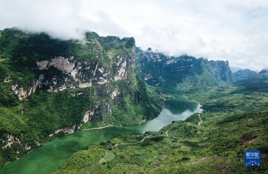貴州省北盤江大峽谷國家濕地公園風(fēng)貌(2018年8月7日攝,無人機(jī)照片)。