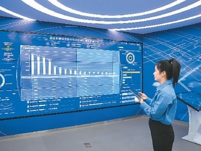 2月24日,在山東省東營經(jīng)濟技術(shù)開發(fā)區(qū)的東營工業(yè)互聯(lián)網(wǎng)創(chuàng)新中心,碳排放管理員通過碳達峰大數(shù)據(jù)平臺,查看和展示開發(fā)區(qū)企業(yè)實時耗能情況。周廣學攝(人民視覺)