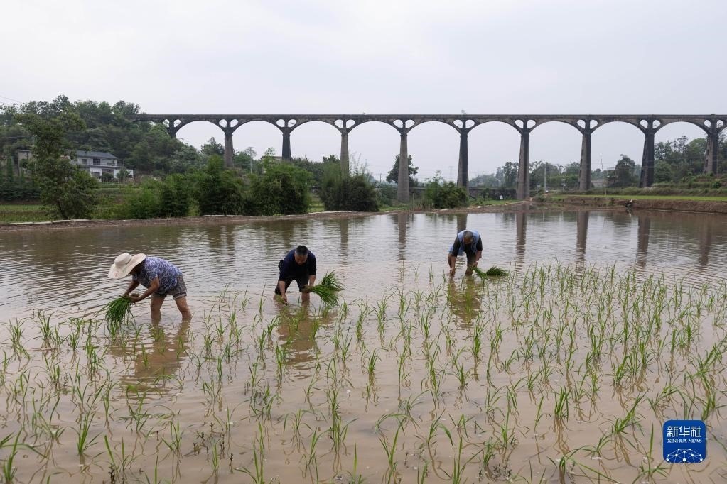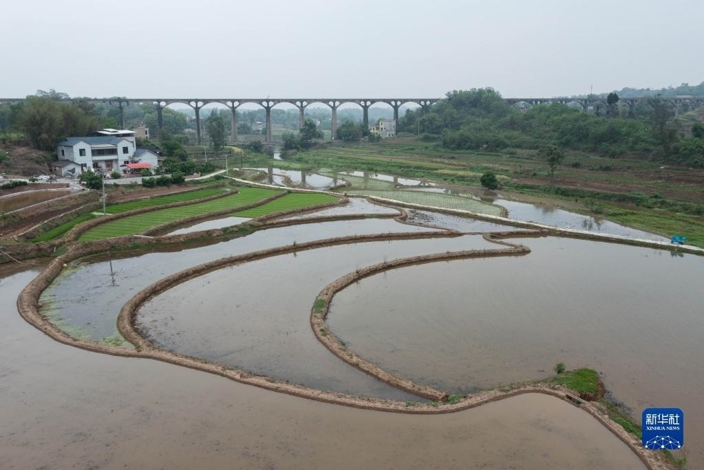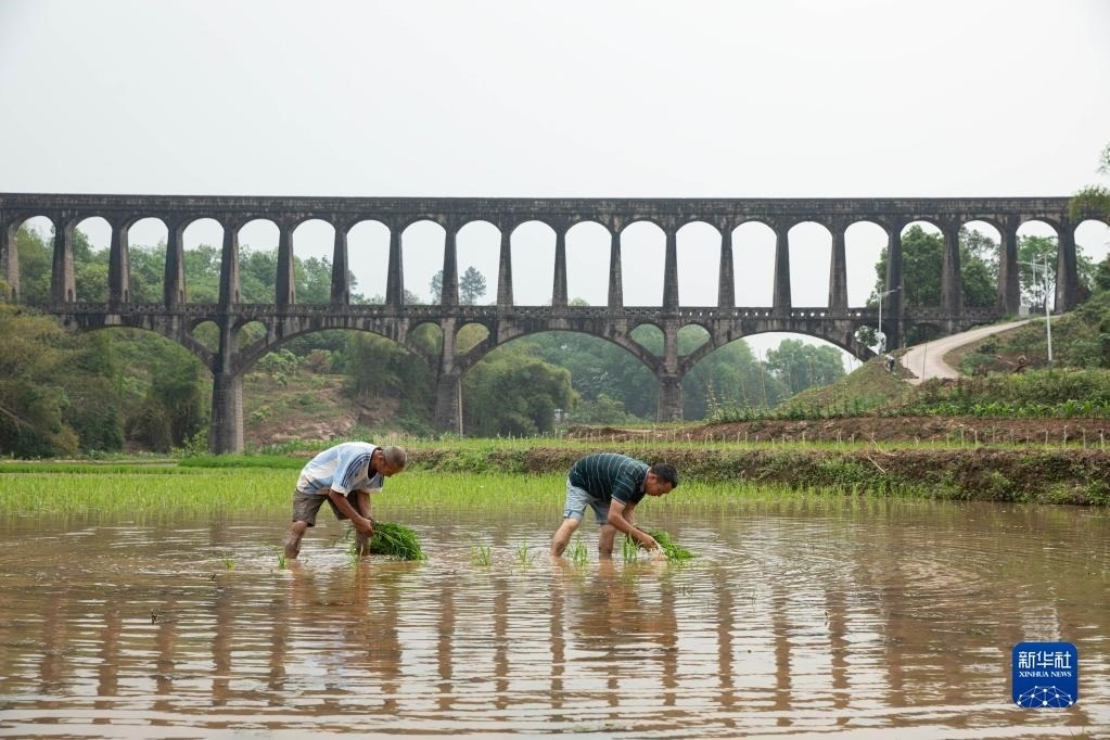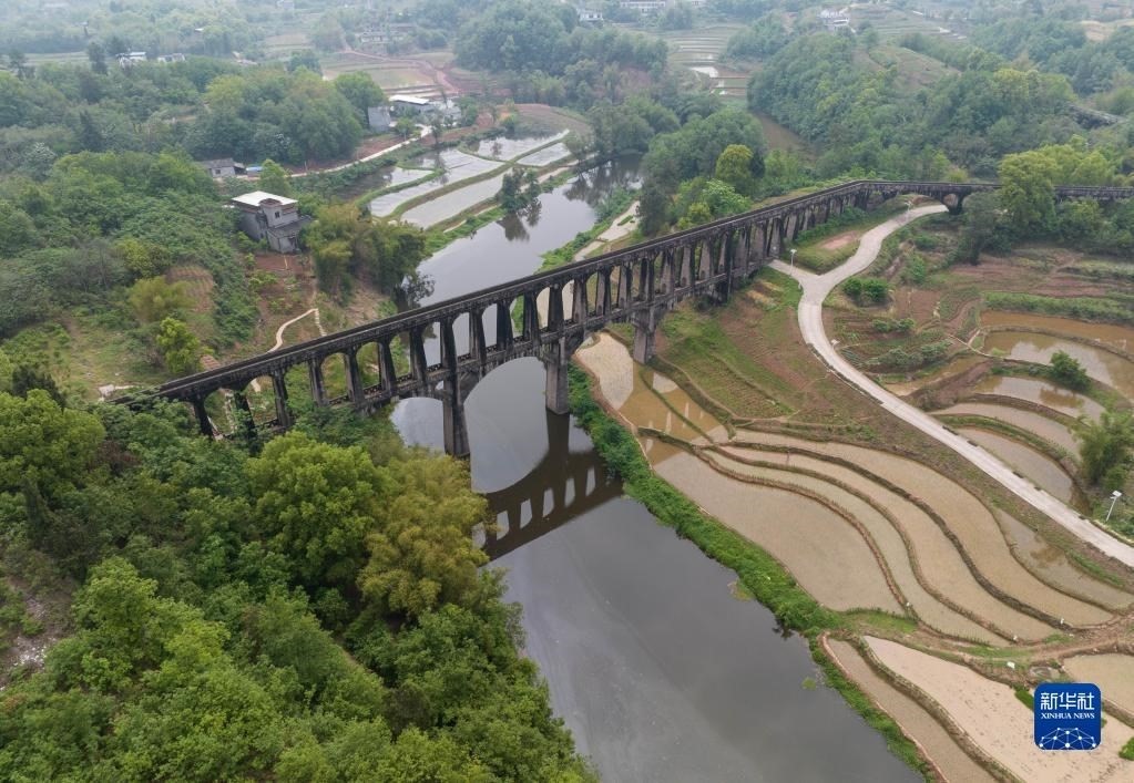 目前,四川省瀘縣正值插秧時(shí)節(jié),有“人工天河”之稱的瀘縣引水渡槽越過(guò)山丘、穿過(guò)農(nóng)田,仍在引水灌溉中發(fā)揮重要作用。