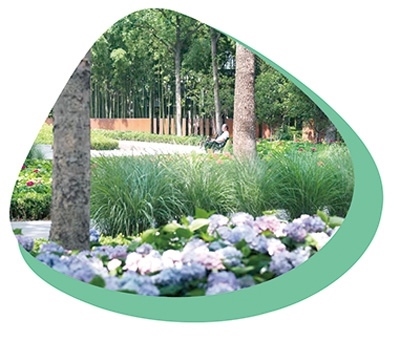 上海市曹家渡花園內(nèi),綠化景觀富有層次。 上海靜安園林綠化發(fā)展有限公司提供