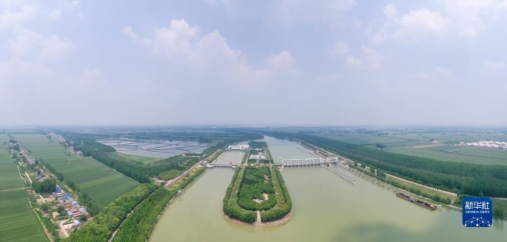 這是位于江蘇省泗洪縣的南水北調(diào)東線一期工程泗洪站樞紐(無(wú)人機(jī)照片,5月12日攝)。新華社發(fā)(方東旭攝)