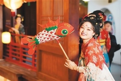 游客在西安“長(zhǎng)安十二時(shí)辰”主題街區(qū)內(nèi)拍照游玩。新華社記者 邵 瑞攝