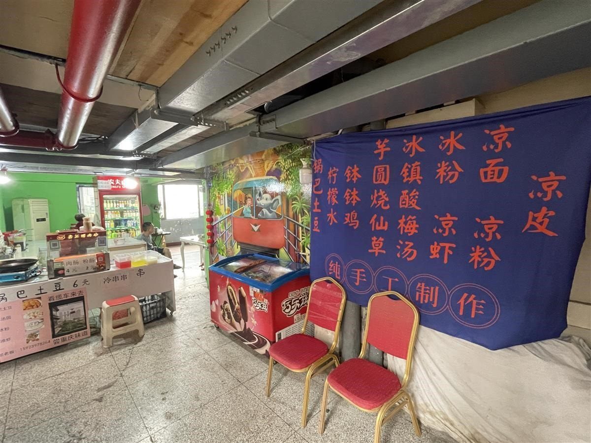 也有居民對(duì)游客持歡迎態(tài)度。從掛有“居民住宅,謝絕參觀”招牌的入口進(jìn)入白象居,是居民樓的第12層,也是游客主要打卡的樓層。這一層均為門面房,白象居居民在這層開有飯店、咖啡店、小賣部等。在12層中間位置開餐館的劉先生告訴極目新聞?dòng)浾撸紫缶?2層以上是居民樓,游客不能進(jìn)去,游客從12樓只能向下到8樓的平臺(tái)位置。從8樓至12樓,很多房屋都被開發(fā)成咖啡屋、民宿等,另有一部分房屋現(xiàn)在還空置出租中。