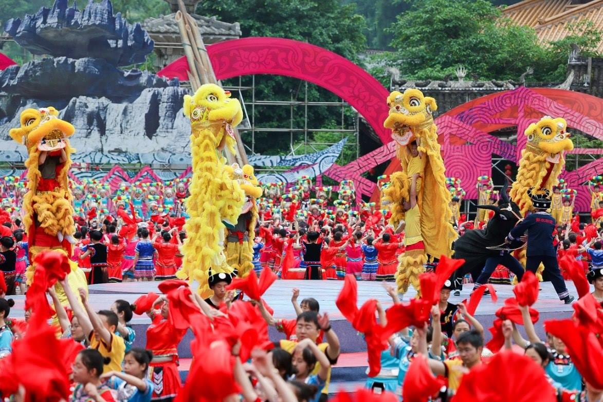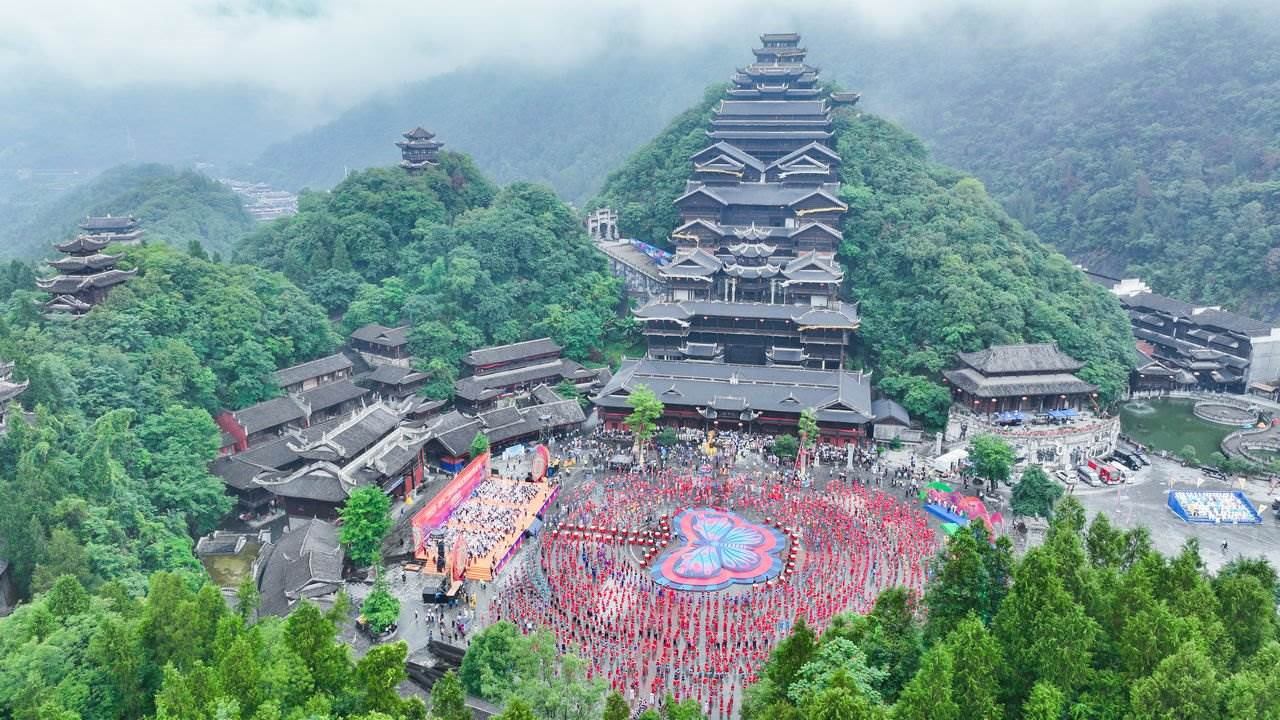 5月26日,2023第十二屆中國(guó)烏江苗族踩花山節(jié)在重慶彭水拉開序幕。上萬(wàn)名苗鄉(xiāng)兒女身著節(jié)日盛裝聚集在這里,共跳踩花山、齊唱“嬌阿依”,現(xiàn)場(chǎng)一片歡樂(lè)的歌舞海洋,場(chǎng)面壯觀。