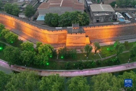 游客在平遙古城城墻上游覽(5月30日攝,無人機(jī)照片)。