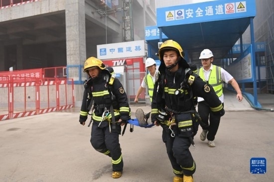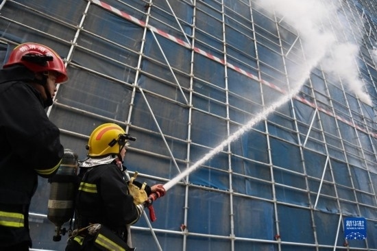 當(dāng)日,浙江省杭州市富陽區(qū)“安全生產(chǎn)月”消防應(yīng)急演練在中建三局富陽銀湖生物信息產(chǎn)業(yè)園項目工地啟動,現(xiàn)場進行火災(zāi)撲救、人員施救等環(huán)節(jié)的演練,以提升安全生產(chǎn)應(yīng)急能力。