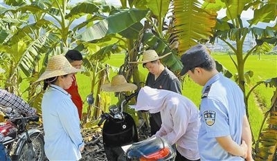 烈日當(dāng)空,在暑氣熏蒸的稻田里,干警敬業(yè)、負(fù)責(zé)的工作態(tài)度讓當(dāng)事人深感佩服,“法官量的是多少就是多少,超出了的我就還給她。”看見被告態(tài)度有所緩和,藍(lán)偉華覺得調(diào)解有了可能性,決定到村委會(huì)繼續(xù)做調(diào)解工作。
