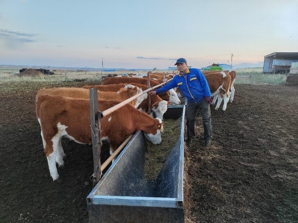 張愛忠今年49歲,他有著18年的養(yǎng)牛經(jīng)驗(yàn),是當(dāng)?shù)氐酿B(yǎng)牛專業(yè)戶。近年來在政策的引導(dǎo)下,張愛忠不斷提升養(yǎng)殖技術(shù)、完善基礎(chǔ)設(shè)施、建立暖棚和青儲窖,引進(jìn)和培育個頭大、肉質(zhì)好的西門塔爾牛。2017年,他注冊登記阿巴嘎旗雲(yún)峰家庭牧場,經(jīng)過幾年的精心飼養(yǎng)和改善引進(jìn),他的肉牛規(guī)模從40頭發(fā)展到200頭。2019年,他的牧場被認(rèn)定為盟級肉?!昂诵娜骸?。
