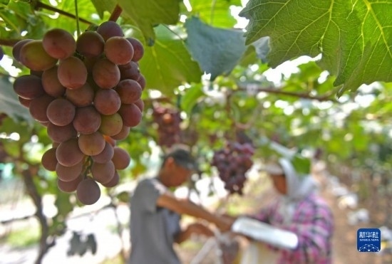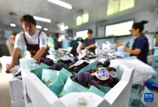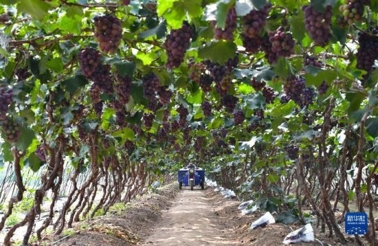 近日,遼寧省燈塔市種植的遼峰葡萄喜迎豐收。燈塔市出產(chǎn)的遼峰葡萄遠(yuǎn)近聞名,目前種植面積約1萬畝。當(dāng)?shù)匾研纬善咸雅嘤?、種植、銷售、倉儲(chǔ)、加工相關(guān)產(chǎn)業(yè)鏈,葡萄是當(dāng)?shù)剞r(nóng)民致富增收的特色產(chǎn)業(yè)。