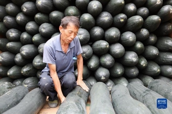 9月13日,村民在貴州省黔東南苗族侗族自治州施秉縣城關(guān)鎮(zhèn)白塘村將收獲的冬瓜裝車,準(zhǔn)備供應(yīng)市場。