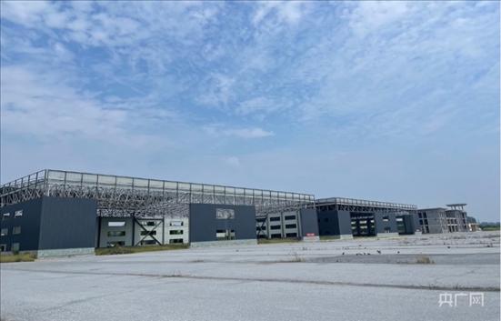 平輿通用機(jī)場(chǎng),機(jī)場(chǎng)建筑外墻仍未粉刷,鋼架結(jié)構(gòu)的建筑內(nèi)長滿荒草。央廣網(wǎng) 圖