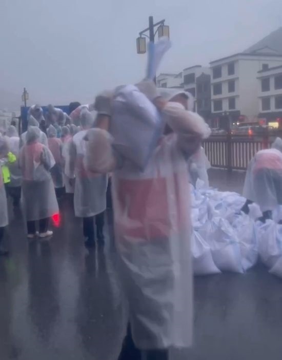 “加快速度裝好沙包!”“一個一個往后傳!”按照錢排鎮(zhèn)政府的統(tǒng)一部署,在保證安全的前提下,200余名學(xué)生志愿者參與沙袋填裝、搬運和堆疊等臺風(fēng)防御工作。