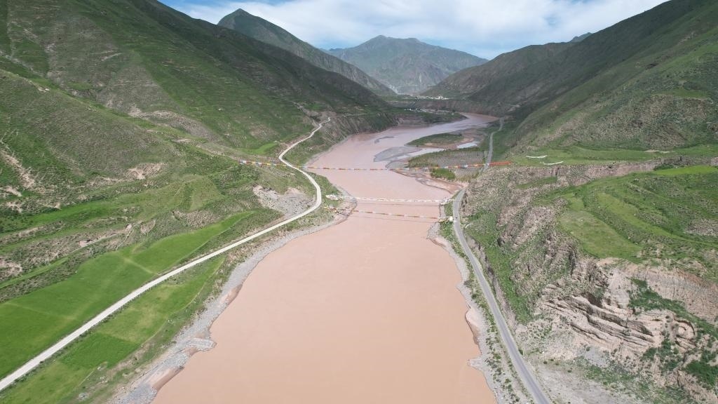 這是7月22日拍攝的通天河直門達(dá)水文站(無人機(jī)照片)。新華社記者劉詩平 攝