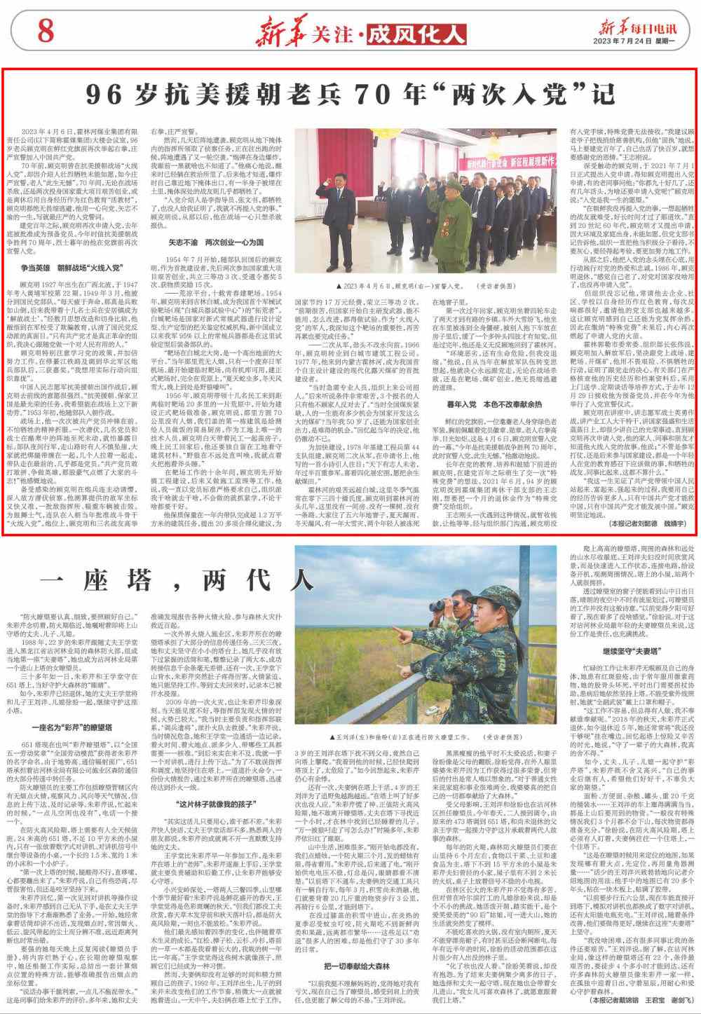 2023年4月6日,霍林河煤業(yè)集團有限責任公司(以下簡稱霍煤集團)大樓會議室,96歲老兵顧克明在鮮紅黨旗前再次舉起右拳,莊嚴宣誓加入中國共產黨。