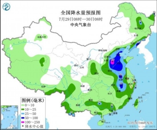 全國降水量預(yù)報圖(7月29日08時-30日08時)