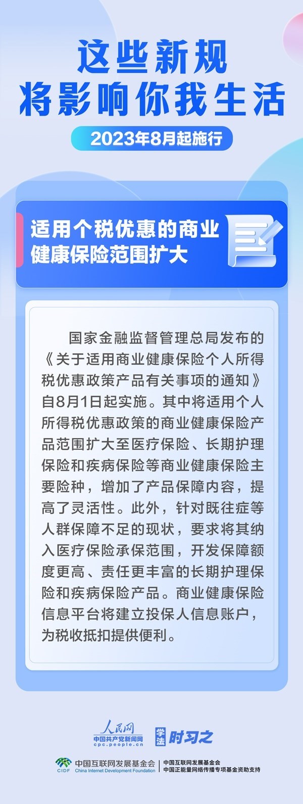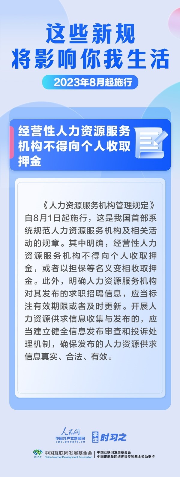 促進(jìn)生成式人工智能健康發(fā)展;擴(kuò)大適用個(gè)稅優(yōu)惠政策的商業(yè)健康保險(xiǎn)產(chǎn)品范圍;明確經(jīng)營性人力資源服務(wù)機(jī)構(gòu)不得向個(gè)人收取押金……8月,這些新規(guī)施行,將影響你我生活。