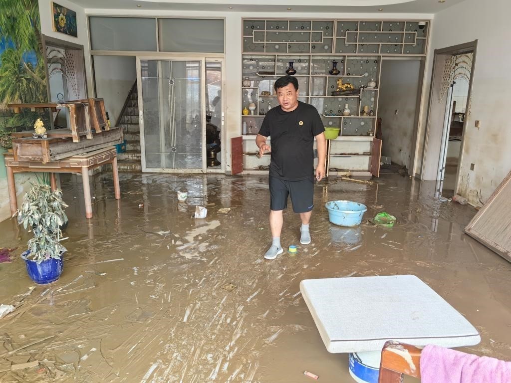望海莊村艷天綜合商店門(mén)前,村民楊立新和趕來(lái)幫忙的親戚朋友正在一起整理受損貨品,這個(gè)村里最大的超市此次受災(zāi)較重?!皳p失不少,但我們不能光等著,先把能搶救的搶救出來(lái),能收拾的都收拾干凈,盡己所能先恢復(fù)?!睏盍⑿抡f(shuō)。