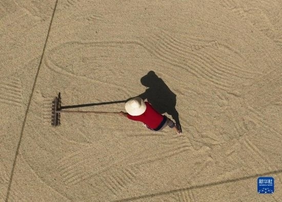 入秋以來,湖南各地晚稻陸續(xù)成熟,農(nóng)民抓住好天氣搶收晾曬。