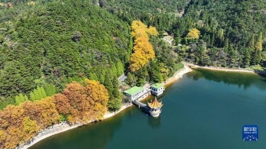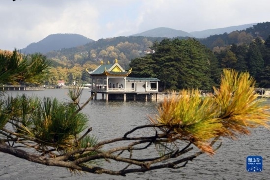 10月20日拍攝的廬山如琴湖秋景(無人機(jī)照片)。