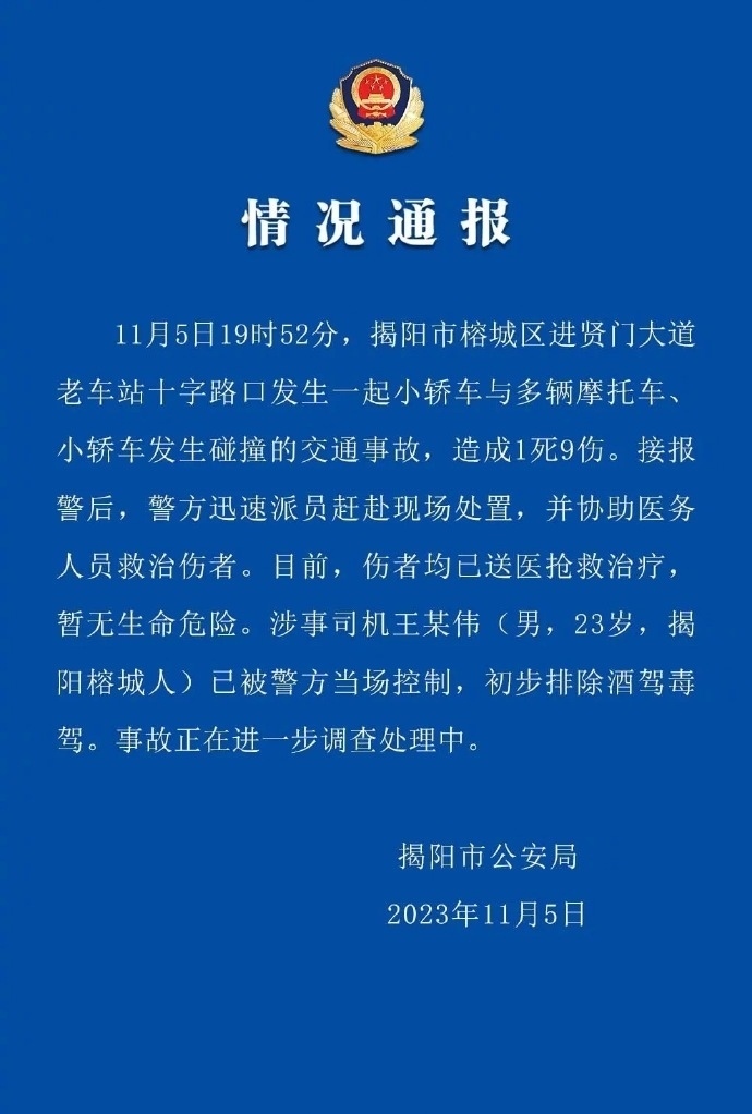 ·廣東揭陽發(fā)生多車碰撞事故,致1死9傷,涉事司機被當場控制。