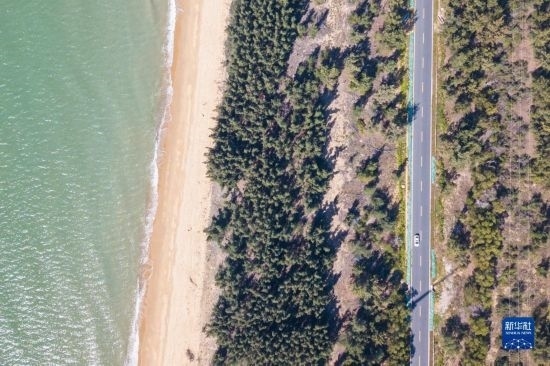 12月10日,車輛行駛在海南環(huán)島旅游公路東方段(無人機(jī)照片)。