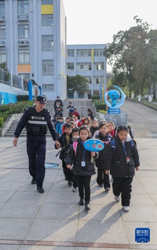 12月20日,秀山派出所民警在秀山小學(xué)放學(xué)時間參與“護(hù)學(xué)崗”維持秩序,同時接獨自放學(xué)的學(xué)生去“民生小鋪”。