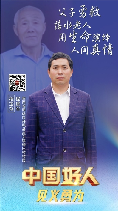 程寶存,男,1953年8月生;程建軍,男,1978年6月生。二人為父子關(guān)系,系陜西省商洛市丹鳳縣武關(guān)鎮(zhèn)梅莊村村民。2021年9月,父子兩人協(xié)力救助落水老人,父親程寶存不幸被水沖走獻(xiàn)出了寶貴生命。程建軍說:“這件事誰遇到都會去做的,我相信我爸也不會后悔自己的選擇。”