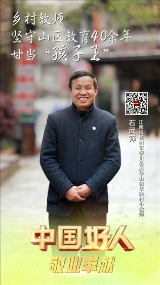 石武蓀,男,1962年5月生,中共黨員,江西省撫州市黎川縣原華山鎮(zhèn)華聯(lián)村小教師。參加工作40多年來,他扎根偏遠(yuǎn)山區(qū),數(shù)次放棄進(jìn)城機(jī)會,默默堅守在離縣城30多公里的大山里,把自己的青春年華無私地奉獻(xiàn)給了山區(qū)的百姓和孩子們。