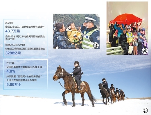 圖③:河北邯鄲市永年區(qū)警民互動(dòng)活動(dòng)中,小朋友向警察敬禮。胡高雷攝(影像中國(guó))圖④:重慶市公安局江北區(qū)分局交巡警支隊(duì)輔警夏英柯在執(zhí)勤中偶遇暴雨,與市民、游客一同避雨。重慶市公安局江北區(qū)分局供圖圖⑤:內(nèi)蒙古出入境邊防檢查總站錫林郭勒邊境管理支隊(duì)“馬背警隊(duì)”正在開展巡邏踏查。格日勒朝克圖攝(人民視覺)