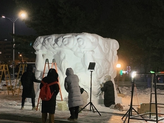 能夠與冰雪“親密接觸”,中國美術(shù)學(xué)院的熊竣苓要感謝剛剛在哈爾濱落幕的第十六屆國際大學(xué)生雪雕大賽。他所在的團(tuán)隊(duì)由包括他在內(nèi)的4位南方同學(xué)組成,他們創(chuàng)作的雪雕作品《盤古開天》獲得了一等獎(jiǎng)。這段比賽經(jīng)歷讓第一次去哈爾濱的熊竣苓非常難忘,“最近哈爾濱很火,雖然我是去參加比賽的,但能去哈爾濱一趟,也非常激動(dòng)了。我記得我們從機(jī)場(chǎng)到酒店的路上,透過車窗看到了霧凇,一下子就讓我這個(gè)南方人感受到了北方冬天的美?!彼貞?,做雪雕時(shí),他和另外3位同學(xué)都既緊張又興奮,“我們都是第一次觸摸雪做雕塑,此前在學(xué)校練習(xí)時(shí)是用泥巴或石膏,跟雪是完全不同的質(zhì)感,所以過程中我們都小心翼翼,非常緊張;同時(shí),我們都是第一次見到這么多雪,太激動(dòng)了?!?/p>