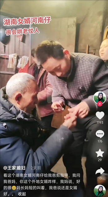 還有的女婿“眼里有活”,去了丈母娘家什么都干,修燈泡、放牛、做飯、打麻將,入鄉(xiāng)隨俗無(wú)所不能,深受丈母娘好評(píng)。
