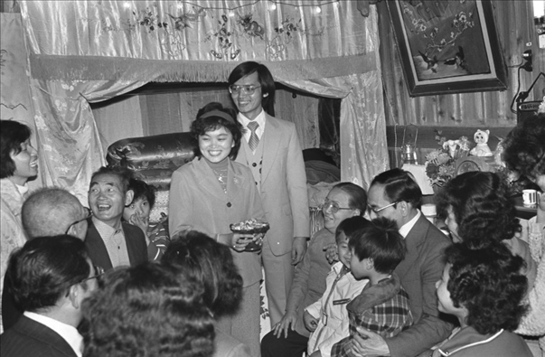 1980年春節(jié)時,有不少港澳同胞回到家鄉(xiāng)結婚。這是福建晉江縣石獅鎮(zhèn)一戶人家在鬧新房。