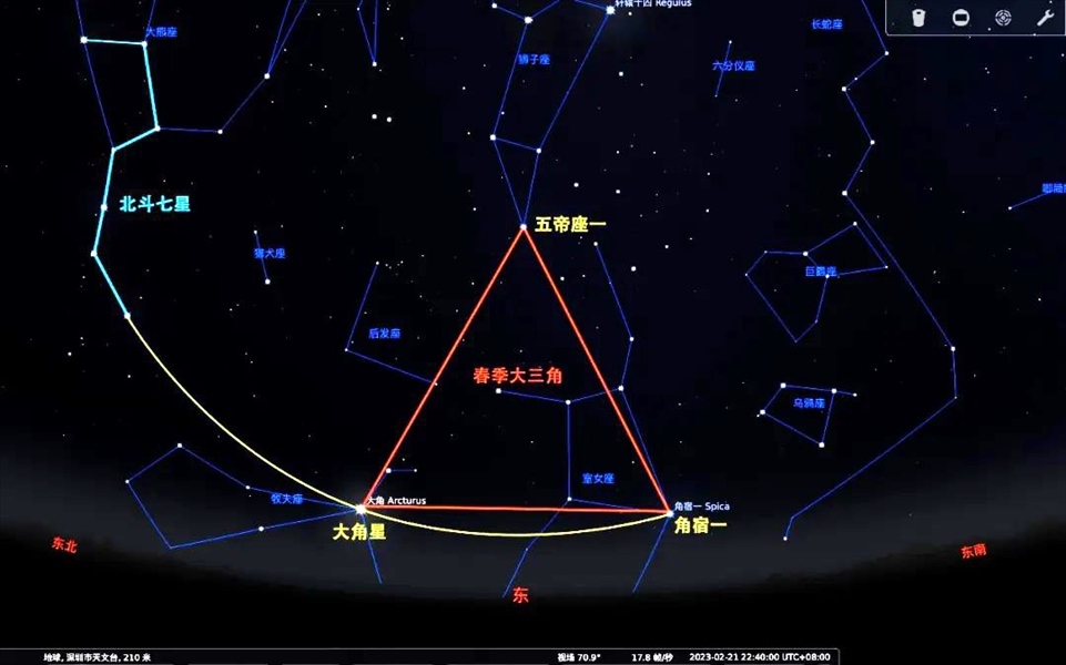 ?。?)找到“角宿一”和“角宿二”,就找到了蒼龍七宿中的第一宿——“角宿”。(恭喜你,找到“龍首”啦)