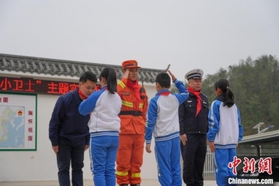 消防員、交警和電力工作人員聯(lián)合為學(xué)生代表頒發(fā)“安全小衛(wèi)士”證書,定期對(duì)學(xué)生傳授相關(guān)安全知識(shí)。李玲 攝