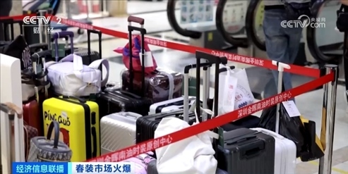 除了工廠訂單增加之外,服裝批發(fā)市場也迎來“開門紅”,在深圳南油服裝批發(fā)市場,人頭攢動(dòng),店鋪門口都堆疊著即將發(fā)貨的大包小包。