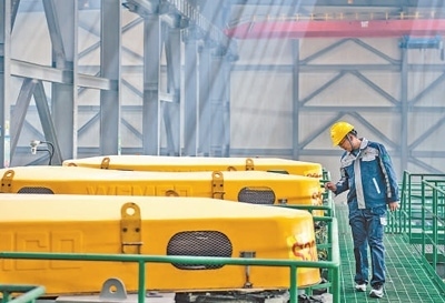 青海鹽湖工業(yè)股份有限公司鉀肥分公司加工車間內(nèi),工人在巡檢鉀肥生產(chǎn)狀況。潘彬彬攝(新華社發(fā))