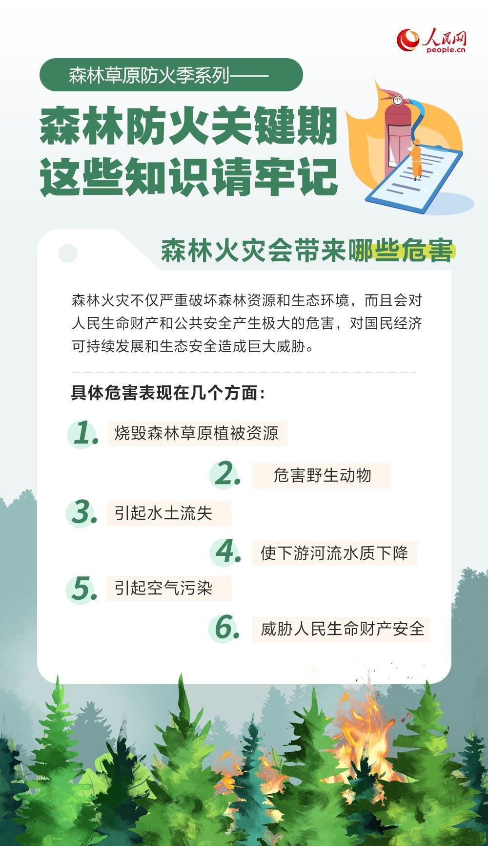 春季氣溫回升,風(fēng)干物燥,是森林草原火災(zāi)的高發(fā)期。森林火災(zāi)會(huì)帶來哪些危害? 如何防范森林火災(zāi)?一起來了解。