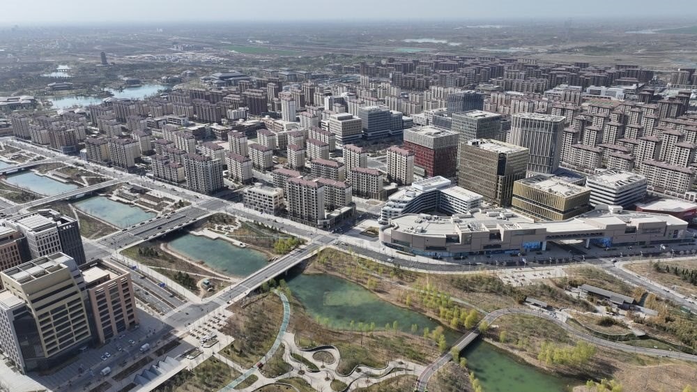 ↑這是雄安新區(qū)容東片區(qū)內(nèi)的樓宇(3月29日攝,無人機照片)。