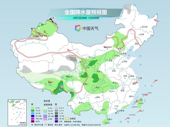 央視網(wǎng)消息:據(jù)中國天氣網(wǎng)消息,今明兩天(4月9日至10日),南方大部處在雨水間歇期,降水稀少,氣溫逐漸回升;華北、東北多地在冷空氣的影響下,將出現(xiàn)弱降水天氣,同時部分地區(qū)氣溫下滑。此外需要注意的是,青藏高原中東部雨雪持續(xù),部分地區(qū)有小到中雪或雨夾雪。