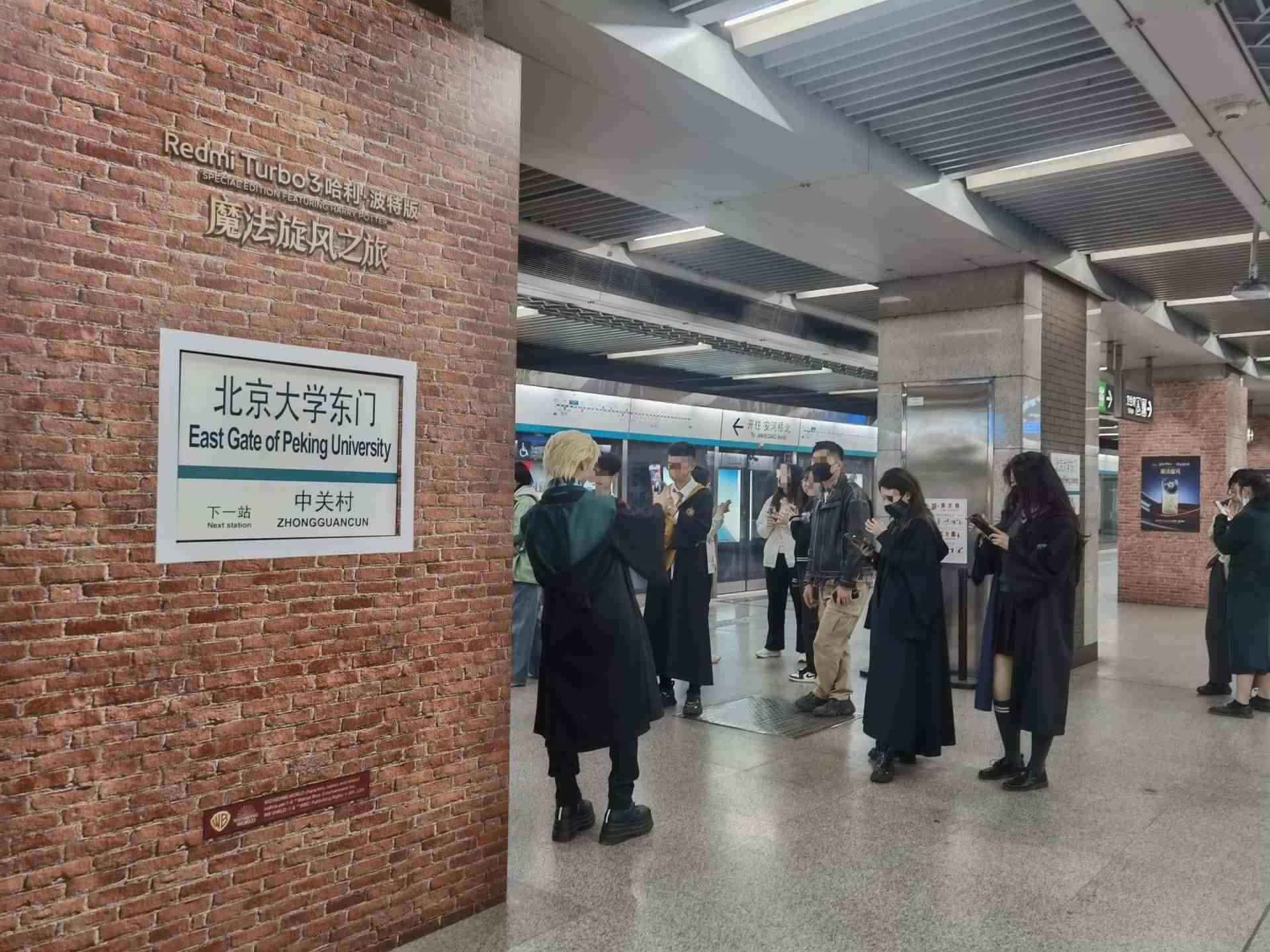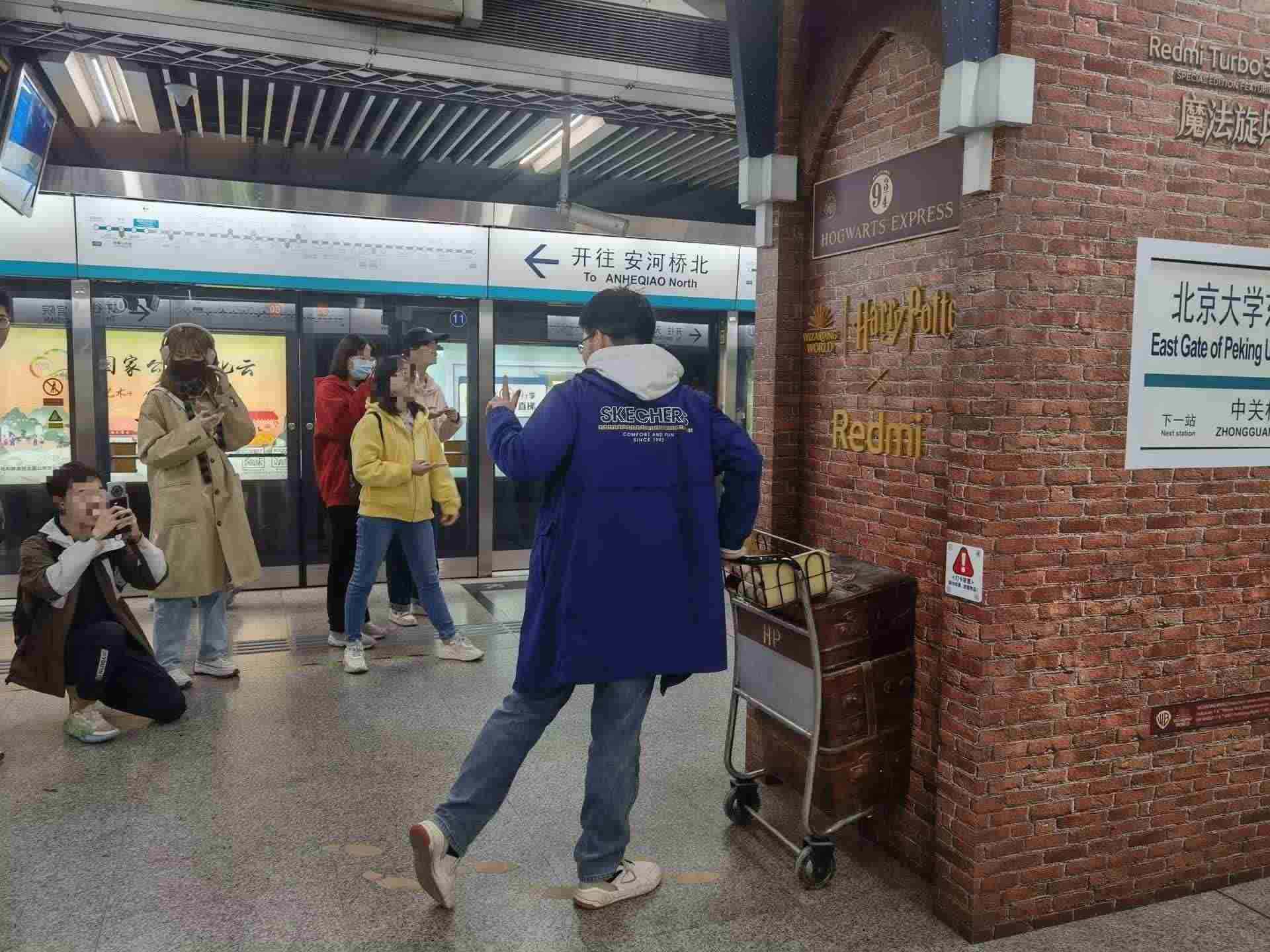 北京大學東門地鐵站內(nèi),眾多市民打卡拍照哈利·波特站臺