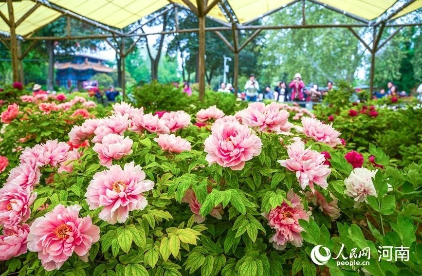 眼下,正是洛陽牡丹盛開的季節(jié)。在王城公園內(nèi),目前共有550個品種牡丹開放,飛燕紅裝、菱花湛露、金絲貫頂、勝葛巾、姚黃、首案紅等品種牡丹,綻放出傾城之姿,吸引了海內(nèi)外游客前來賞花游園。