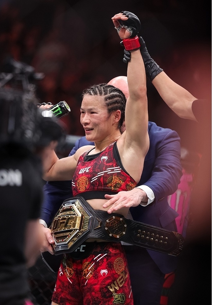 北京時間14日,UFC(終極格斗冠軍賽)史上首次“中國德比”冠軍戰(zhàn)在美國拉斯維加斯上演。兩位選手?jǐn)y手奉獻(xiàn)了一場精彩的比賽,經(jīng)過五回合鏖戰(zhàn),張偉麗戰(zhàn)勝閆曉楠,成功衛(wèi)冕女子草量級金腰帶。