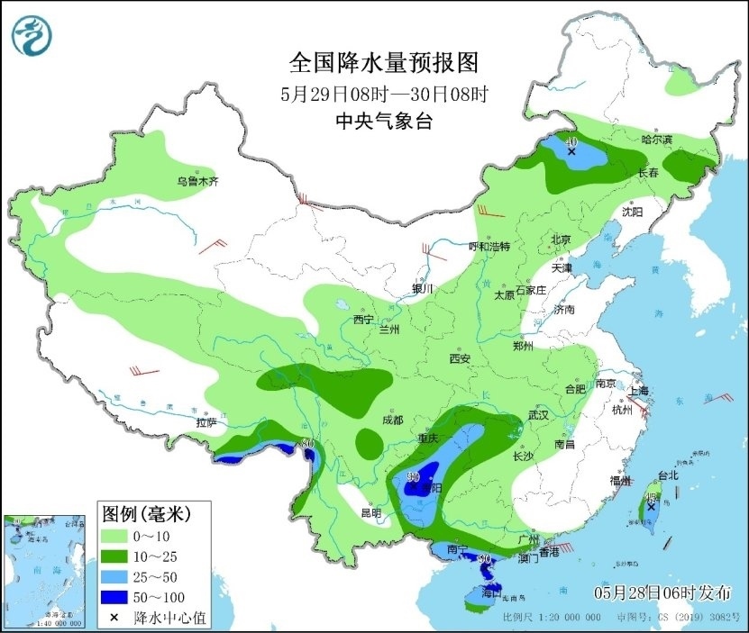 人民網(wǎng)北京5月28日電 (溫璐、高清揚(yáng))據(jù)中央氣象臺(tái)網(wǎng)站消息,昨日,較強(qiáng)降水主要出現(xiàn)在江南中東部、華南及西南地區(qū)東南部等地,其中,安徽銅陵,浙江金華和衢州,福建南平,廣東江門和茂名,廣西玉林、崇左、百色和南寧,云南文山等局地出現(xiàn)大暴雨。預(yù)計(jì)今明兩天,南方地區(qū)強(qiáng)降水范圍收縮,暴雨預(yù)警今晨已降級(jí)為藍(lán)色,但華南南部、西南地區(qū)東部等地部分地區(qū)仍雨勢(shì)較強(qiáng),公眾需關(guān)注持續(xù)降雨對(duì)交通出行的不利影響,注意出行安全。
