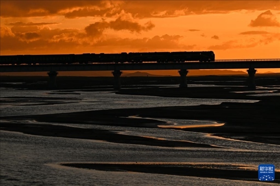 初夏時節(jié),青藏鐵路與高山、河流相映成趣,壯美絢麗。