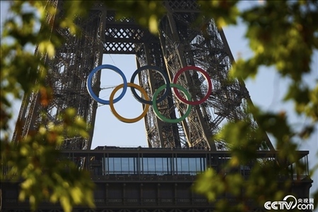 當(dāng)?shù)貢r間2024年6月7日,在巴黎奧運會開幕倒計時50天之際,奧運五環(huán)被安裝在巴黎埃菲爾鐵塔上。
